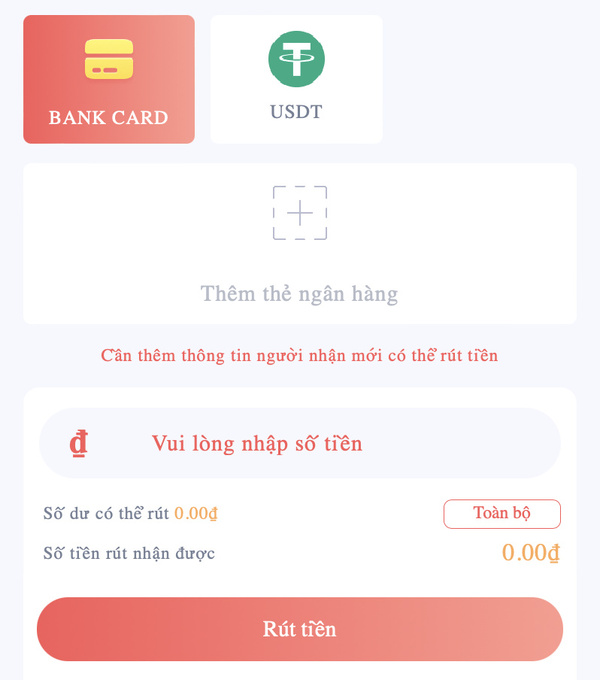 Bước 3 – Chọn mục “Rút tiền” và phương thức